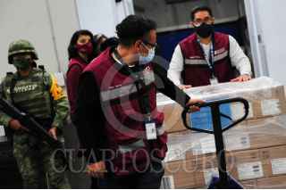 CUAUTITLÁN IZCALLI, EDOMEX, 01SEPTIEMBRE2021.- Esta mañana en las instalaciones de Laboratorios y Biológicos de México (BIRMEX) se liberaron más de 4 millones de vacunas contra el Covid-19 de la farmacéutica AstraZeneca, con la cual completarán el esquema de vacunación en adultos de 40 a 49 años y la primera dosis en jóvenes de 18 a 29 años. Con este cargamento, México rebasa ya las 102 millones de vacunas recibidas. FOTO: DANIEL AUGUSTO /CUARTOSCURO.COM