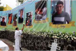 CUERNAVACA, MORELOS, 30AGOSTO2021.- Padres, familiares y amigos de diez jóvenes que fueron asesinados cuando se encontraban en un velorio en la colonia Antonio Barona, conmemoraron el primer aniversario con una misa celebrada en la glorieta de entrada de la población. Los padres coincidieron en que a un año de la desgracia la Fiscalía de Justicia no ha dado resultados sobre quienes asesinaron a los jóvenes. FOTO: MARGARITO PÉREZ RETANA / CUARTOSCURO.COM