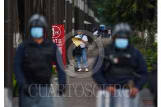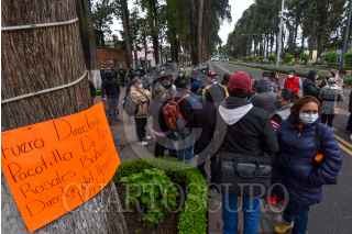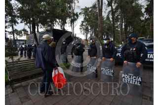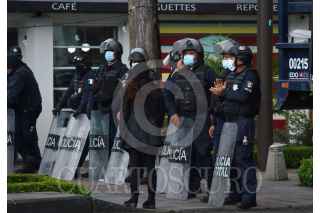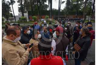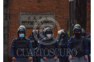 TOLUCA, ESTADO DE MÉXICO, 01SEPTIEMBRE2021.- Por varias horas fue restringido el paso por elementos de la Secretaría de Seguridad estatal en Paseo Colón en donde se encuentra Casa Estado de México en donde un grupo de Trabajadores del Sistema Nacional de Salud así como algunos integrantes del magisterio mexiquense se manifestaron exigiendo el pago de bonos, destitución de directivos médicos por actos de corrupción entre otras cosas. FOTO: CRISANTA ESPINOSA AGUILAR /CUARTOSCURO.COM