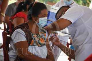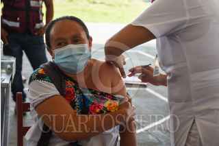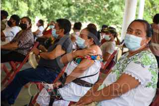 HECELCHAKAN, CAMPECHE 1 SEPTIEMBRE 2021.- Pobladores de las comunidades mayas reciben la segunda dosis de la aplicación de la vacuna AstraZeneca para personas de 40 a 49 años, con lo que a completaron su esquema de vacunación. FOTO: MICHAEL BALAM/CUARTOSCURO.COM
