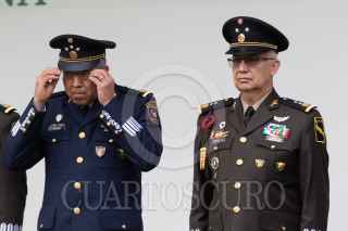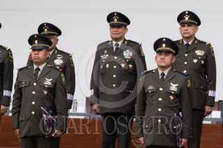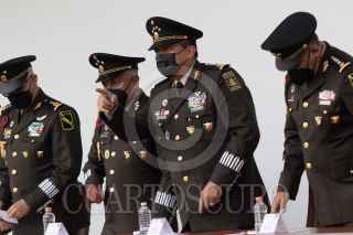 CIUDAD DE MÉXICO, 01SEPTIEMBRE2021.- Luis Crecencio Sandoval, secretario de la Defensa Nacional (SEDENA), encabezó la "Ceremonia de Ascensos de las Promociones Especial, Sargentos 1/os. Especialistas y Reclasificación 2021, en las instalaciones del Estadio de Fútbol SEDENA. Lo acompañaron Ricardo Trevilla Trejo; Jefe del Estado Mayor de la Defensa Nacional; Gabriel García Rincón, Oficial Mayor de la Sedena; Carlos Arturo Pancardo Escudero, Inspector y Contralor General del Ejército y Fuerza Aérea; Eufemio Ibarra Flores, comandante del Ejército Mexicano, y José Gerardo Vega Rivera, comandante de la Fuerza Aérea Mexicana. FOTO: MOISÉS PABLO/CUARTOSCURO.COM