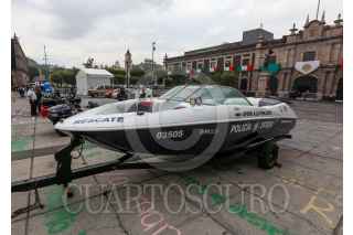 TOLUCA, ESTADO DE MÉXICO, 01SEPTIEMBRE2021.- CAEM, elementos de la Secretaría de Seguridad, SUEM, Protección Civil, PROBOSQUE son algunas de las dependencias que participan en la Feria de Seguridad instalada en la Plaza de los Mártires en donde se llevan diversas actividades con el público asistente, conocen de cerca el trabajo que se realiza en cada una de estas dependencias. FOTO: CRISANTA ESPINOSA AGUILAR /CUARTOSCURO.COM