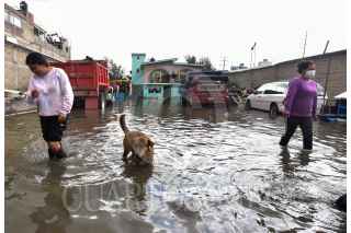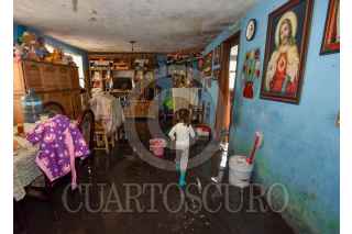 SAN MATEO ATENCO, ESTADO DE MÉXICO, 02SEPTIEMBRE2021.- Familias del barrio de la Concepción en San Mateo Atenco se encuentran viviendo en el agua después de las lluvias que se han registrado en el Valle de Toluca, los niños no pudieron asistir a clases y los adultos levan dos días sin poder acudir a sus trabajos, denuncian que autoridades municipales y estatales no les han brindado el apoyo para poder sacar el agua de sus hogares, han solicitado bombas y no les prestan atención; sus muebles en su mayoría son pérdida total, a pesar de que en este punto se registran constantemente inundaciones autoridades municipales construyeron un carcamo para disminuir las inundaciones no ha funcionado del todo. FOTO: CRISANTA ESPINOSA AGUILAR /CUARTOSCURO.COM