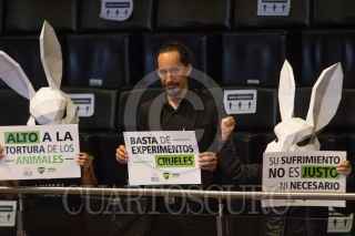 CIUDAD DE MÉXICO, 02SEPTIEMBRE2021.- Activistas de la organización Animal Heroes, la senadora Jesusa Rodríguez y su pareja Liliana Felipe celebraron en el Senado de la República la reforma a la Ley General de Salud que prohíbe el uso de animales para experimentos de belleza y artículos cosméticos así como castigar hasta con siete años de cárcel a quien contrate, autorice, conduzca, participe o desarrolle dichas prácticas. FOTO: MOISÉS PABLO/CUARTOSCURO.COM