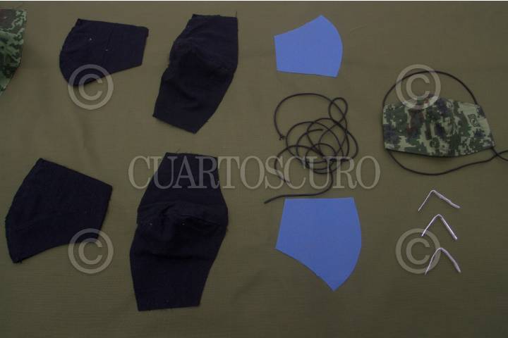 CIUDAD DE MÉXICO, 02SEPTIEMBRE2021.- Elementos de la Secretaría de Defensa Nacional (SEDENA) comenzaron a confeccionar la producción de aproximadamente 20 mil cubrebocas para los militares que participarán en el Desfile Militar del próximo 16 de septiembre en el Zócalo capitalino. La elaboración de los cubrebocas de tres capas, las cuales se dividen en la tela de colores, la parte interna, que es el filtro y la tela que esta en contacto con naríz y boca; un clip y resorte elástico se realiza en las instalaciones de Fábrica de Artículos de Campaña dentro de las Fábricas de Vestuario y Equipo (F.A.V.E) de la SEDENA. FOTO: GRACIELA LÓPEZ /CUARTOSCURO.COM