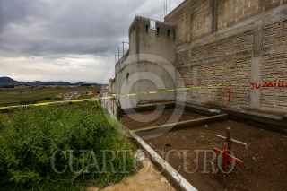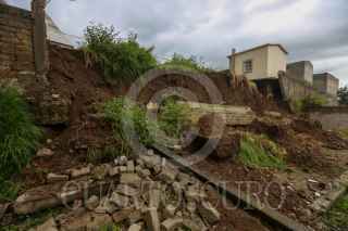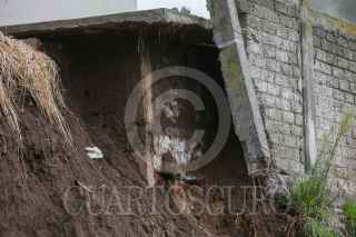 TOLUCA, ESTADO DE MÉXICO, 02SEPTIEMBRE2021.- Debido a las lluvias de las últimas horas una parte de la barda perímetral del panteón de San Felipe Tlalmimilolpan se derrumbó debido al reblandecido de la tierra por la lluvia. FOTO: CRISANTA ESPINOSA AGUILAR /CUARTOSCURO.COM