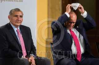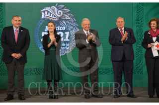 CIUDAD DE MÉXICO, 03SEPTIEMBRE2021.- El Presidente Andrés Manuel López Obrador, durante la conferencia de prensa de todas las mañanas, en el salón Tesorería de Palacio Nacional. Lo acompañaron la jefa del Gobierno de la Ciudad, Claudia Sheinbaum Pardo, el titular de Gobernación Adán Augusto López y el Presidente de la Cruz Roja Mexicana Fernando Suinaga. FOTO: VICTORIA VALTIERRA/CUARTOSCURO.COM