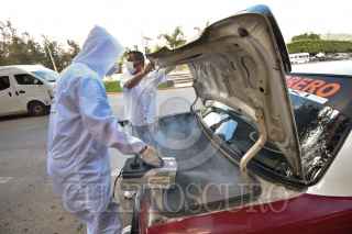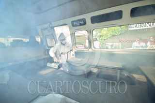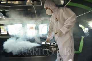 CHILPANCINGO, GUERRERO. 03SEPTIEMBRE2021.- Transportistas y representantes de la Confederación Revolucionario de Obreros y Campesinos (CROC) iniciaron en Chilpancingo la sanitización de unidades, como parte de la Brigada Nacional de Sanitización “Por la salud de todas y todos”, con el objetivo de brindar un servicio de autotransporte público seguro para los usuarios, en el marco de la Pandemia por Covid-19. FOTO; DASSAEV TÉLLEZ/CUARTOSCURO.COM