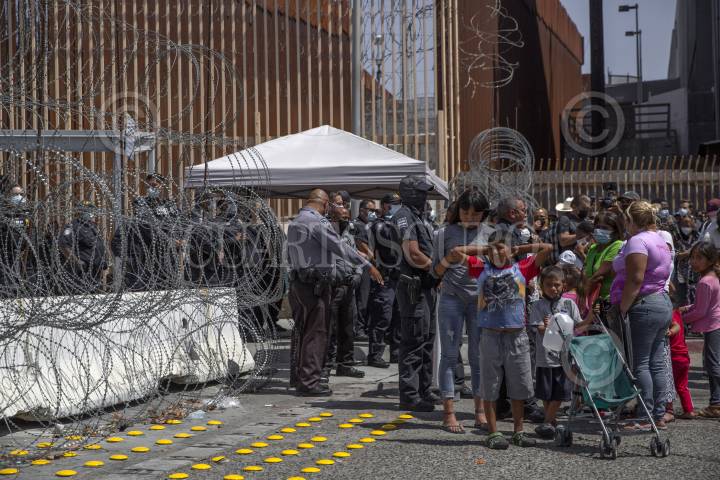 TIJUANA, BAJA CALIFORNIA,03SEPTIEMBRE2021.- Una manifestación de migrantes que exigieron asilo político provocó el cierre temporal del cruce peatonal y la línea Sentri de la garita internacional de San Ysidro durante la tarde de este viernes. El cierre se registró cuando un grupo de aproximadamente 100 personas acudió a la garita de San Ysidro, específicamente en la línea Sentri, y se formó para solicitar asilo político. El movimiento provocó que agentes del CBP detuvieran operaciones en la línea Sentri y cruce peatonal, lo que tuvo como resultado esperas mayores a cinco horas para personas que buscaban cruzar a Estados Unidos. Tres migrantes fueron detenidos por la Policía Municipal de Tijuana. FOTO: OMAR MARTÍNEZ /CUARTOSCURO.COM