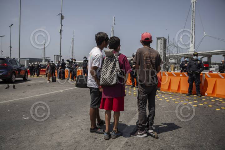 TIJUANA, BAJA CALIFORNIA,03SEPTIEMBRE2021.- Una manifestación de migrantes que exigieron asilo político provocó el cierre temporal del cruce peatonal y la línea Sentri de la garita internacional de San Ysidro durante la tarde de este viernes. El cierre se registró cuando un grupo de aproximadamente 100 personas acudió a la garita de San Ysidro, específicamente en la línea Sentri, y se formó para solicitar asilo político. El movimiento provocó que agentes del CBP detuvieran operaciones en la línea Sentri y cruce peatonal, lo que tuvo como resultado esperas mayores a cinco horas para personas que buscaban cruzar a Estados Unidos. Tres migrantes fueron detenidos por la Policía Municipal de Tijuana. FOTO: OMAR MARTÍNEZ /CUARTOSCURO.COM