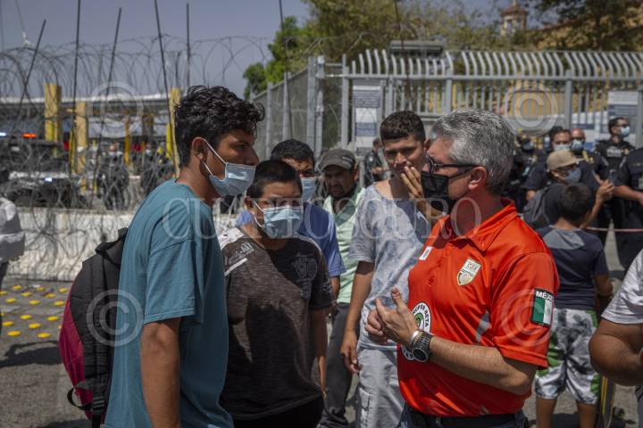 TIJUANA, BAJA CALIFORNIA,03SEPTIEMBRE2021.- Una manifestación de migrantes que exigieron asilo político provocó el cierre temporal del cruce peatonal y la línea Sentri de la garita internacional de San Ysidro durante la tarde de este viernes. El cierre se registró cuando un grupo de aproximadamente 100 personas acudió a la garita de San Ysidro, específicamente en la línea Sentri, y se formó para solicitar asilo político. El movimiento provocó que agentes del CBP detuvieran operaciones en la línea Sentri y cruce peatonal, lo que tuvo como resultado esperas mayores a cinco horas para personas que buscaban cruzar a Estados Unidos. Tres migrantes fueron detenidos por la Policía Municipal de Tijuana. FOTO: OMAR MARTÍNEZ /CUARTOSCURO.COM