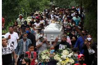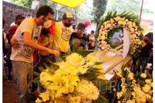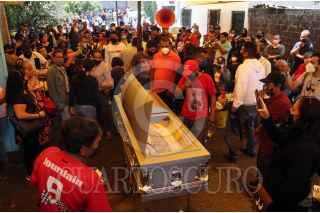 CUERNAVACA MORELOS, 05SEPTIEMBRE2021.- Funeral de Rodrigo Morales Velázquez, activista social, ambientalista y fotógrafo que fue asesinado el jueves en la noche en un ataque directo cuando se encontraba en la avenida Universidad al norte de la ciudad. Rodrigo Morales fue un férreo opositor al funcionamiento del tiradero de basura de Loma de Mejía hace más de diez años, hasta que dicho tiradero fue clausurado. Desde enero volvió a funcionar el tiradero y con ello las protestas han surgido, pues se asegura que es un atentado contra la ecología de la capital. Este lunes 6 de septiembre se realizará una marcha desde el sitio donde fue asesinado hasta las oficinas de la Fiscalía de Justicia del Estado para pedir una investigación rápida a fin de esclarecer el motivo de su asesinato. FOTO: MARGARITO PÉREZ RETANA / CUARTOSCURO.COM