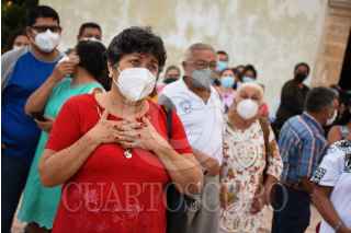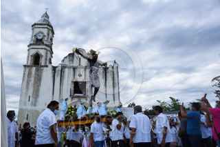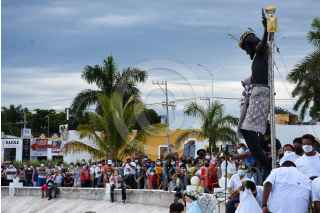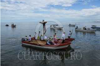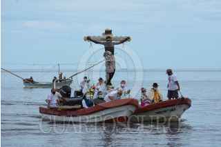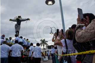 CAMPECHE, CAMPECHE, 05SEPTIEMBRE2021.- El Cristo Negro Señor de San Román regreso a su tradicional paseo por mar para bendecir la bahía campechana, luego de haberse cancelado el año pasado debido a la pandemia del Covid-19. La festividad del Cristo Negro es la más antigua y representativa en el estado, su llegada fue hace 456 años en una embarcación europea. Los fieles católicos cantaron alabanzas y entre sus peticiones pidieron el cese de la pandemia. FOTO: MICHAEL BALAM/CUARTOSCURO.COM