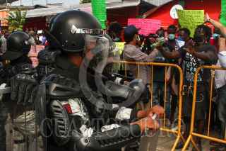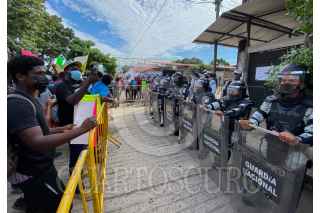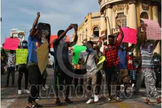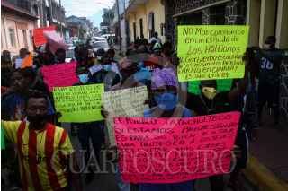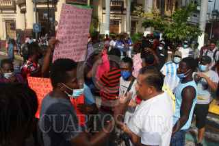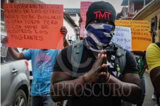 TAPACHULA, CHIAPAS, 06SEPTIEMBRE2021.-Ciudadanos haitianos marcharon de la Plaza Central en Tapachula hacia las oficinas de la delegación, para posteriormente dirigirse con ruta a la Comisión Mexicana de Ayuda a Refugiados, los inconformes exigen a las autoridades un trato justo sin corrupción y más eficacia en los trámites para migratorios. ROGELIO MORALES /CUARTOSCURO.COM