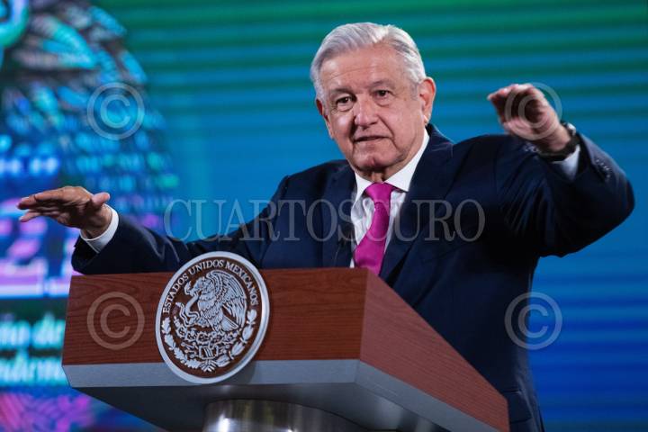 CIUDAD DE MÉXICO, 06SEPTIEMBRE2021.- Andrés Manuel López Obrador, Presidente de México, encabezó la conferencia matutina en Palacio Nacional. Lo acompañó Ricardo Sheffield Padilla, director de la Profeco. Durante el encuentro habló sobre su recorrido por los avances del Tren Maya, en donde lo acompañó el Ingeniero Carlos Slim. También retomó el tema del encuentro del PAN y el líder del partido Vox de España, como parte de su respuesta mostró un documento de la Confederación de la Clase Media. FOTO: MOISÉS PABLO/CUARTOSCURO.COM