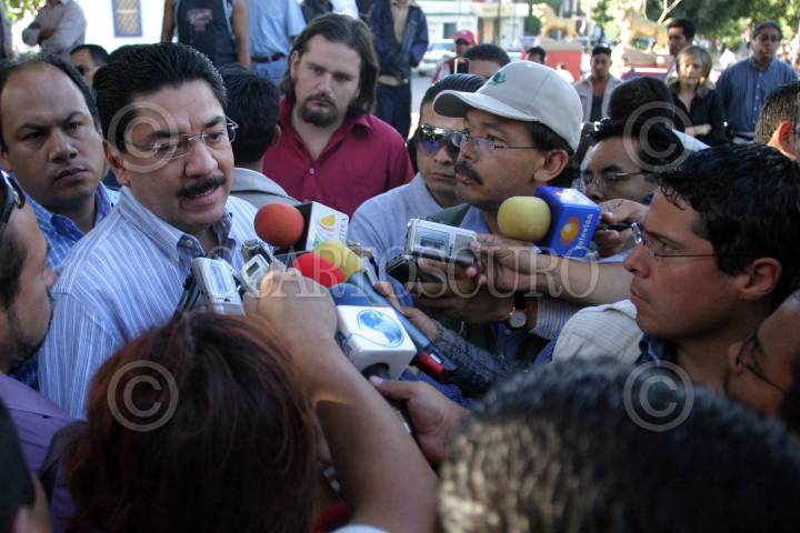 OAXACA, OAXACA, 03OCTUBRE2006.- Presuntos policias vestidos de civiles custodiaron las inmediaciones del Parque del Llano en el cual Ulises Ruíz, gobernador de Oaxaca, encabezó un acto. FOTO: MOISÉS PABLO/CUARTOSCURO.COM