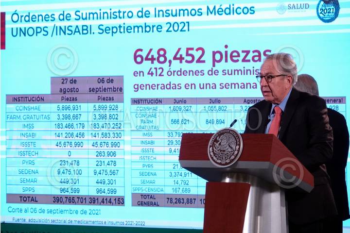 CIUDAD DE MÉXICO, 07SEPTIEMBRE2021.- El presidente Andrés Manuel López Obrador en compañía de los secretarios de estado en materia de salud, educación, relaciones exteriores y defensa nacional ofrecieron la conferencia de prensa matutina desde Palacio Nacional. Asimismo, el mandatario anunció el sorteo especial 248 de la Lotería Nacional (Lotenal) propuesto para el 15 de septiembre donde serán rifadas propiedad y un palco en el Estadio Azteca. FOTO: GALO CAÑAS/CUARTOSCURO.COM