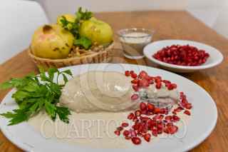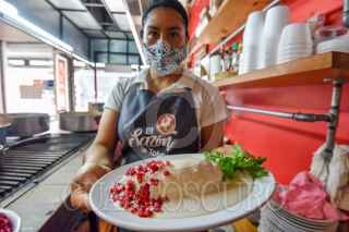 TOLUCA, ESTADO DE MÉXICO, 07SEPTIEMBRE2021.- Siguiendo la receta original de los tradicionales Chiles en Nogada de Puebla que están a unos días de conmemorar 200 años en la gastronomía mexicana, La Polonesa, con más de 40 años de tradición en Toluca los comienza a elaborar desde el mes de julio y termina a finales de septiembre; usan ingredientes de primera calidad como manzana de Zacatlán, pera lechera, nuez de Castilla, piñón, pasa Guera, diversas especies y su secreto una mezcla de pimientas, carne de cerdo y res, la nogada que lleva un toque de Jerez y queso de cabra, así como crema ácida de rancho, ingredientes que en armonía dan como resultado este magnífico platillo, el cual deleita el paladar de sus clientes, considerado un tesoro de la gastronomía mexicana. Para los días 15 y 16 de septiembre sus ventas se incrementan considerablemente no solo por los chiles en nogada si no también por los antojitos mexicanos. Sus Chiles en Nogada son con el toque y sazón de Toluca. FOTO: CRISANTA ESPINOSA AGUILAR /CUARTOSCURO.COM