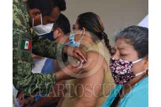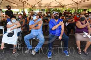 CAMPECHE, CAMPECHE.- Personas mayores y embarazadas que aún no contaban con la primera y segunda dosis de la vacuna contra el Covid-19 de la marca Pfizer fueron vacunados en la tercera región naval en Campeche. FOTO: MICHAEL BALAM/CUARTOSCURO.COM