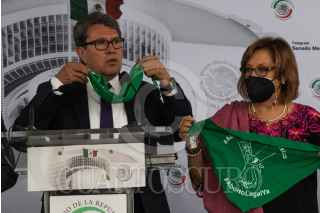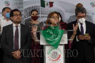 CIUDAD DE MÉXICO, 07SEPTIEMBRE2021.- Los senadores morenistas encabezados por Martha Lucía Mícher y Ricardo Monreal ofrecieron una rueda de prensa para hablar sobre la decisión de la Suprema Corte de Justicia de la Nación (SCJN) de despenalizar el aborto en cualquier etapa de la gestación. FOTO: MOISÉS PABLO/CUARTOSCURO.COM