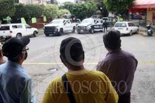 CUERNAVACA MORELOS, 07SEPTIEMBRE2021.- Este mediodía fue asesinado Alejandro García Zagal, conocido como ‘Chepe’, líder de la colonia Antonio Barona. El crimen ocurrió cuando ‘Chepe’ se encontraba en la Casa de Gestión, ubicada en la calle Lázaro Cárdenas. Según un boletín de la Fiscalía General del Estado, a las 11:29 de la mañana se recibió el reporte de que un hombre había sido lesionado a balazos, por lo que servicios de emergencia se trasladaron al sitio, pero nada pudieron hacer. Elementos de la Policía de Morelos y Guardia Nacional acordonaron el sitio mientras peritos e investigadores de Fiscalía levantaron los indicios. Al lugar llegó el fiscal Uriel Carmona Gándara, quien recorrió la escena del crimen junto al director de servicios periciales. Alejandro García Zagal era un reconocido líder de la colonia Barona por lo que su homicidio conmocionó a sus vecinos. En los últimos meses había encabezado varios bloqueos para demandar un eficiente servicio de agua potable en el municipio. FOTO: MARGARITO PÉREZ RETANA / CUARTOSCURO.COM