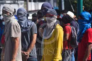 CHILPANCINGO, GUERRERO, 07SEPTIEMBRE2021.- Estudiantes de la Normal de Ayotzinapa bloquearon completamente la vialidad sobre la Autopista del Sol para demandar la entrega de material didáctico que es utilizado por los estudiantes en sus prácticas profesionales como computadoras para todos los alumnos de nuevo ingreso, además de recursos económicos para las actividades festivas por el aniversario de la institución, uniformes escolares y deportivos, también equipamiento para las áreas de producción, e incluso fertilizante para la siembra que realizaron dentro del plantel. FOTO: DASSAÉV TÉLLEZ /CUARTOSCURO.COM