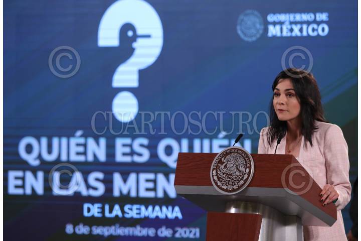 CIUDAD DE MÉXICO, 08SEPTIEMBRE2021.- Andrés Manuel López Obrador, presidente de México acompañado de Ana Elizabeth García Vilchis, durante la conferencia matutina donde se destacó el tema de las inundaciones y sismo, también las supuestas mentiras emitidas en medios de comunicación. La conferencia se llevó a cabo en Palacio Nacional. FOTO: ANDREA MURCIA /CUARTOSCURO.COM