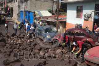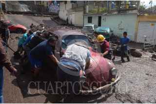 CIUDAD DE MÉXICO. 08SEPTIEMBRE2021.- Se registró un deslave en un cerro de la Colonia Chalma de Guadalupe en la calle de Quintana Roo en la alcaldía Gustavo A. Madero (GAM), el cual sepultó seis vehículos que ayudaron los vecinos a retirar entre lodo y piedras. FOTO: ARMANDO MONROY/CUARTOSCURO.COM