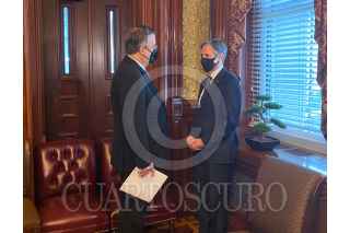 WASHINGTON, D.C., 09SEPTIEMBRE2021.- El secretario de Relaciones Exteriores, Marcelo Ebrard Casaubon, entregó esta mañana al secretario de Estado estadounidense, Antony Blinken, una carta del presidente Andrés Manuel López Obrador a su homólogo estadounidense, Joe Biden. En una reunión bilateral celebrada en la Casa Blanca, el secretario Ebrard entregó la misiva en la que el presidente López Obrador plantea al presidente Biden la necesidad de un nuevo tratamiento al fenómeno de la migración desde países de Centroamérica. La carta se pronuncia a favor de un enfoque que priorice el desarrollo y las oportunidades en las regiones de origen de la migración, como el que ha guiado a México a financiar e implementar los programas sociales Sembrando Vida y Jóvenes Construyendo el Futuro. FOTO: SRE/CUARTOSCURO.COM
