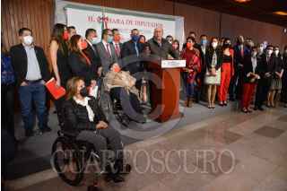 CIUDAD DE MÉXICO, 09SEPTIEMBRE2021.- Rubén Moreira, diputado y coordinador del PRI, junto a sus compañeros legisladores, durante conferencia de prensa en la que se manifestaron en contra de la desaparición del fideicomiso del Fondo de Desastres Naturales (Fonden) durante la anterior legislatura, luego de los recientes fenómenos meteorológicos presentados en distintos estados de la República. FOTO: MARIO JASSO/CUARTOSCURO.COM