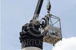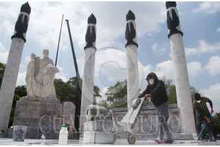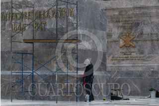 CIUDAD DE MÉXICO. 09SEPTIEMBRE2021.- Trabajadores de limpieza y elementos de la Secretaría de la Defensa Nacional realizaron trabajos de limpieza en el Monumento a la Patria, previo a la celebración en honor a los Niños Héroes el próximo 13 de septiembre. FOTO: GRACIELA LÓPEZ /CUARTOSCURO.COM