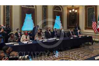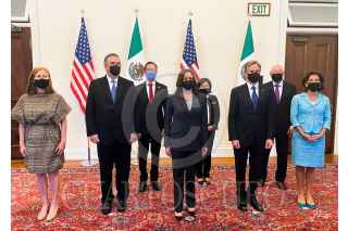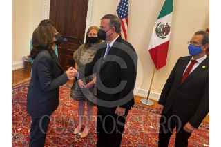WASHINGTON D.C., ESTADOS UNIDOS, 09SEPTIEMBRE2021.- El día de hoy se reactivó en la Casa Blanca el Diálogo Económico de Alto Nivel entre México y Estados Unidos (DEAN). El DEAN busca avanzar en las prioridades estratégicas económicas, sociales y comerciales que son centrales para el impulso del crecimiento económico regional, la creación de empleos, la inversión en la gente y la reducción de las desigualdades y la pobreza en todas sus dimensiones. La vicepresidenta de Estados Unidos, Kamala Harris y el secretario de Relaciones Exteriores, Marcelo Ebrard, ofrecieron un mensaje de bienvenida a medios, en el que destacaron la importancia de la cercanía de ambas administraciones, así como la visión estratégica compartida que México y Estados Unidos mantienen respecto de las prioridades para el desarrollo económico sustentable de la región americana. FOTO: SRE/CUARTOSCURO.COM
