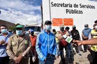 CHILPANCINGO, GUERRERO, 09SEPTIEMBRE2021.- Trabajadores de Servicios públicos municipales iniciaron un este jueves un paro de labores y toma de sus instalaciones para exigir al alcalde, Antonio Gaspar Beltrán, que cumpla con el pago de prestaciones que le corresponde pagar antes de que concluya su administración. Los manifestantes exigieron que a la brevedad se pague el bono del día del burócrata que se debió pagara antes del 30 de septiembre y hasta el momento no lo ha depositado. Además del bono del servidor público se tiene retraso en otros rubros como la entrega de despensas, estímulos a la permanencia, devolución del ISR y entrega de cuotas sindicales y transferencia de recursos al sistema de pre4visión social. Los trabajadores dejaron de atender temas como la recolección de basura, barrido manual en calles y avenidas, y atención de parques y jardines, debido a ello en la ciudad se empezaron a presentar acumulación de residuos en las esquinas. FOTO: DASSAEV TÉLLEZ ADAME/CUARTOSCURO.COM