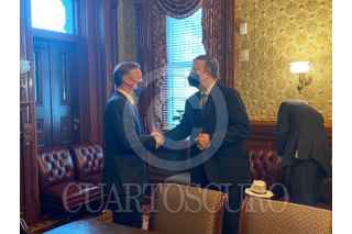 WASHINGTON D. C., ESTADOS UNIDOS, 10SEPTIEMBRE2021.- Marcelo Ebrard, secretario de Relaciones Exteriores, y el embajador Esteban Moctezuma se reunieron con representantes de empresas globales de los sectores aeroespacial, farmacéutico, transporte, comercio electrónico, innovación y agrícola, entre otros, a fin de resaltar las oportunidades que se abren en el país con la recuperación económica pospandemia. FOTO: SRE/CUARTOSCURO.COM