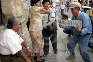 OAXACA, OAXACA, 07OCTUBRE2006.- Escritores independientes se manifestaron pacificamente a favor de la paz y reconciliación del pueblo oaxaqueño, regalando abrazos por el zócalo. FOTO: MOISÉS PABLO/CUARTOSCURO.COM