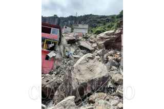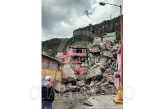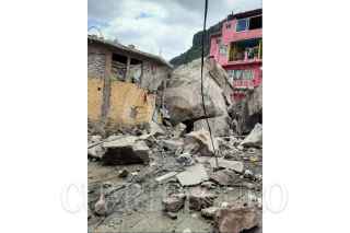 TLALNEPANTLA, ESTADO DE MÉXICO. 10SEPTIEMBRE2021.- Una roca enorme se desprendio de un cerro y cayo encima de 3 casas, en la colonia Lázaro Cárdenas 3era sección, de este municipio. Servicios de rescate realizan los trabajos para rescatar 4 personas que al parecer se encontraban en sus domicilios. FOTO: CUARTOSCURO.COM