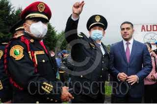 CIUDAD DE MÉXICO, 12SEPTIEMBRE2021.- Esta mañana, Omar García Harfuch, titular de la Secretaría de Seguridad Ciudadana, dio el banderazo de la salida a las nuevas unidades de patrullas y motocicletas con las que contarán los elementos de la Alcaldía Tlalpan, en específico al sector Topilejo, uno de los puntos con mayor incidencia delictiva de la ciudad. FOTO: DANIEL AUGUSTO /CUARTOSCURO.COM