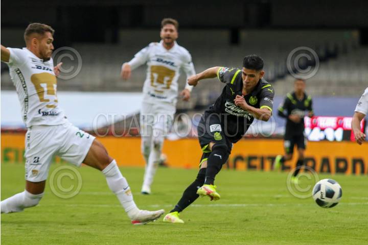 CIUDAD DE MÉXICO, 12SEPTIEMBRE2021.- Los Pumas empataron a ceros ante las Chivas del Guadalajara, partido correspondiente a la jornada 8 del Torneo Grita México A21, en el Estadio Olímpico Universitario. FOTO: MOISÉS PABLO/CUARTOSCURO.COM