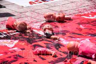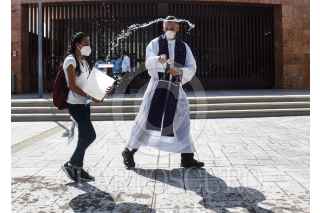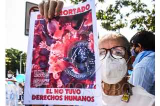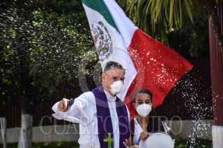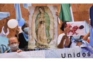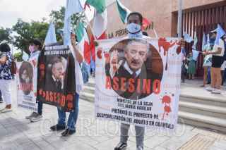CANCUN QUINTANA ROO. 13SEPTIEMBRE2021.- Miembros de provida se manifestaron afuera del.poder judicial de la federación para protestar contra el aborto, mientras un sacerdote hecha agua bendita para exorcizar y quitar el pecado. FOTO: ELIZABETH RUIZ/CUARTOSCURO.COM