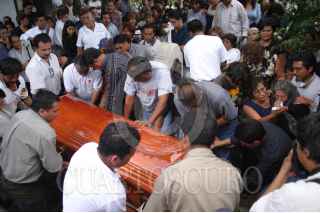 OAXACA, OAXACA, 07OCTUBRE2006.- Familiares del maestro asesinado Jaime Rene Calvo se despiden de sus restos durante su entierro en el panteón Central. En vida el profesor pertenecía a el Consejo Central de Lucha que es parte de la disidencia de la sección XXII del SNTE y por latanto formaba parte del grupo que quería retomar las clases. FOTO: MOISÉS PABLO/CUARTOSCURO.COM