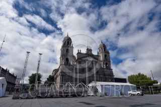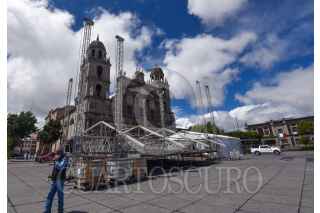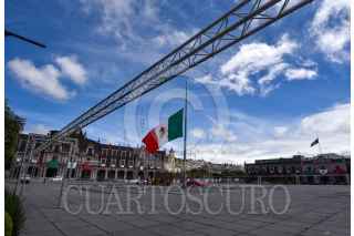 TOLUCA, ESTADO DE MÉXICO, 13SEPTIEMBRE2021.- Preparan un escenario en la Plaza de los Mártires para el festejo del 211 Aniversario de la Independencia de México, el cual será transmitido por Televisión y se invita a la población a quedarse en casa durante estos festejos a fin de evitar un aumento en los contagios por COVID-19. FOTO: CRISANTA ESPINOSA AGUILAR /CUARTOSCURO.COM