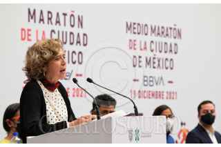 CIUDAD DE MÉXICO. 13SEPTIEMBRE2021.- Presentación del Medio Maraton de la Ciudad de México, que se realizará el próximo 28 de Noviembre, la ruta para salir de Ciudad Universitaria y concluir en el Zócalo capitalino; encabezaron el evento, Rosaura Ruiz Secretaria de Educación y Rodrigo Dosal, directo del Instituto del Deporte. FOTO: GOBIERNO DE LA CIUDAD/CUARTOSCURO.COM