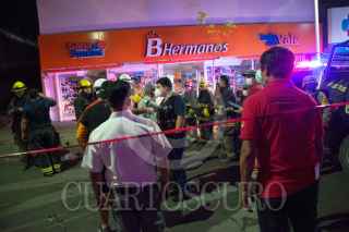 CULIACÁN, SINALOA. 14SEPTIEMBRE2021.- Una mujer muerta y cuatro heridos fue el saldo que dejó el derrumbe del techo de una zapatería de la zona centro de Culiacán. Las corporaciones policiacas y de rescate informaron que la persona que murió fue identificada como Susana Arely, de 30 años, quien era gerente de la zapatería B Hermanos. Las personas heridas son Amairany, de 23 años; Alexis, de 21; Erasmo, de 52; y Claudia, de 34 años. Todos ellos eran trabajadores y clientes de la zapataería. El hecho ocurrió alrededor de las 18:30 horas en la sucursal de dicha zapatería que se ubica sobre la calle Ángel Flores y Domingo Rubi, en la zona centro. La información señala que a esa hora el techo del comercio se vino abajo y cayó sobre las cinco personas, aplastando a Susana Arely. Minutos después del derrumbe, al lugar acudieron bomberos, paramédicos de la Cruz Roja y policías, quienes auxiliaron a las víctimas. FOTO: JUAN CARLOS CRUZ/CUARTOSCURO