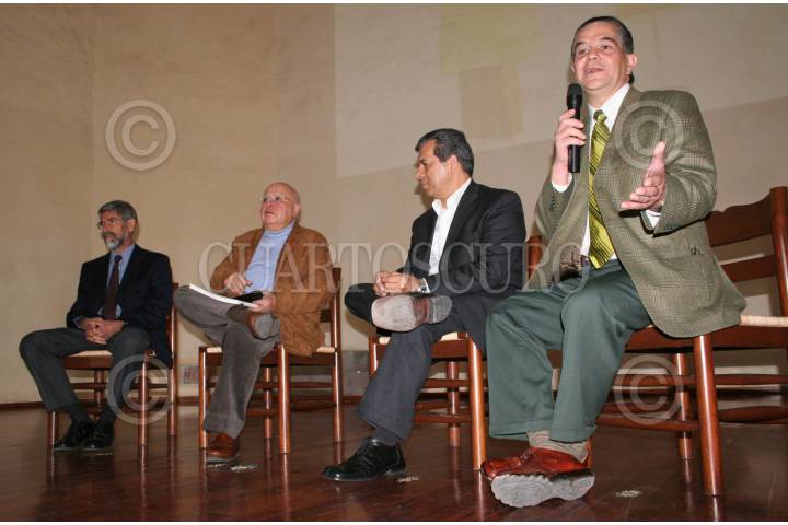 MÉXICO, D.F. 07OCTUBRE2006.- En el marco de la presentacón del libro "Diseño Industrial de Clara Porset" se llevó a cabo la inauguración de la exposición de muebles creados por la cubana. Gerardo Estrada, coordinador de difusión cultural de la UNAM y Jurgen Imendorf ante una de las piezas expuestas. FOTO: PAOLA HIDALGO/CUARTOSCURO.COM