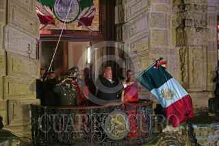 GUADALAJARA, JALISCO, 15SEPTIEMBRE2021.- Enrique Alfaro Ramírez, Gobernador del estado, en el marco del 211 aniversario de la Independencia de México, dio el tradicional grito desde el balcón de Palacio de Gobierno, solo que esta vez a causa de la Pandemia Sanitaria por Covid-19, la Plaza de Armas lucio desolada. FOTO: FERNANDO CARRANZA GARCIA / CUARTOSCURO.COM
