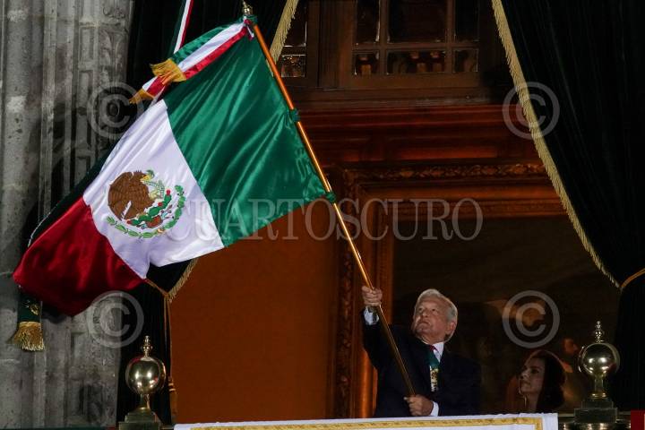 CIUDAD DE MÉXICO, 15SEPTIEMBRE2021.- Andrés Manuel López Obrador, presidente de México, en compañía de la investigadora y primera dama Beatriz Gutiérrez Müller encabezaron el grito que conmemora el 211 aniversario del inicio de la Independencia de México. FOTO: GALO CAÑAS/CUARTOSCURO.COM
