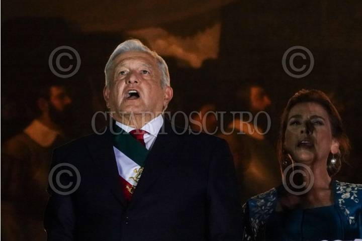 CIUDAD DE MÉXICO, 15SEPTIEMBRE2021.- Andrés Manuel López Obrador, presidente de México, en compañía de la investigadora y primera dama Beatriz Gutiérrez Müller encabezaron el grito que conmemora el 211 aniversario del inicio de la Independencia de México. FOTO: GALO CAÑAS/CUARTOSCURO.COM