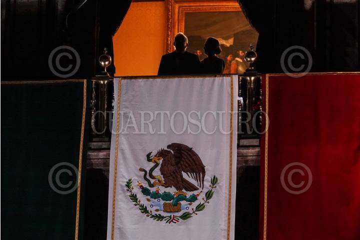 CIUDAD DE MÉXICO, 15SEPTIEMBRE2021.- Andrés Manuel López Obrador, presidente de México, en compañía de la investigadora y primera dama Beatriz Gutiérrez Müller encabezaron el grito que conmemora el 211 aniversario del inicio de la Independencia de México. FOTO: GALO CAÑAS/CUARTOSCURO.COM