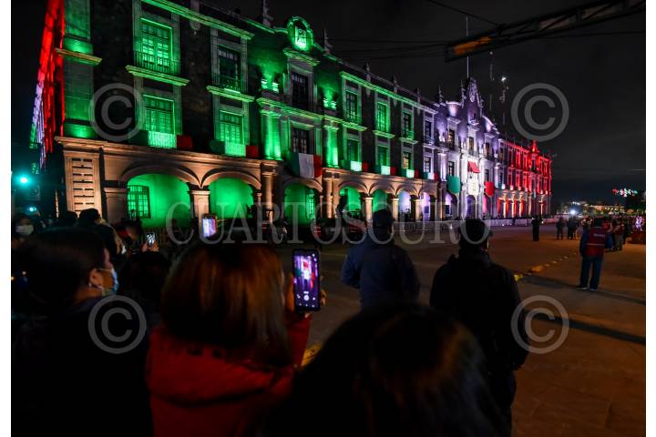 TOLUCA, ESTADO DE MÉXICO, 15SEPTIEMBRE2021.- Alfredo del Mazo Maza, Gobernador del Estado de México dio el Grito por el 211 Aniversario de la Independencia de México, se realizó un espectáculo musical en la Plaza de los Mártires el cual fue transmitido por TV, el primer cuadro de la capital mexiquense fue cerrado para evitar la llegada de la población al lugar ante la contingencia por COVID-19 y evitar un aumento de contagios en la entidad. FOTO: CRISANTA ESPINOSA AGUILAR /CUARTOSCURO.COM