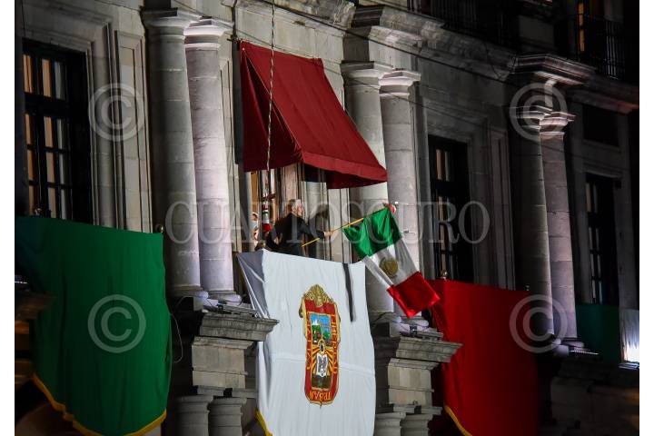 TOLUCA, ESTADO DE MÉXICO, 15SEPTIEMBRE2021.- Alfredo del Mazo Maza, Gobernador del Estado de México dio el Grito por el 211 Aniversario de la Independencia de México, se realizó un espectáculo musical en la Plaza de los Mártires el cual fue transmitido por TV, el primer cuadro de la capital mexiquense fue cerrado para evitar la llegada de la población al lugar ante la contingencia por COVID-19 y evitar un aumento de contagios en la entidad. FOTO: CRISANTA ESPINOSA AGUILAR /CUARTOSCURO.COM